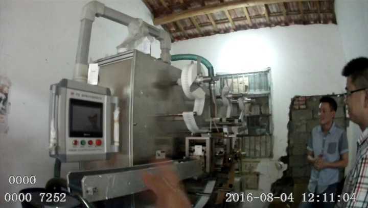 機器一頭放入沒經過處理的紗布和膠布等原材料,另一頭就出來一片片已經切割完成的創可貼。接著,幾個工人將每一片創可貼放入早就準備好的假冒紙袋中,這樣就完成了整個工序。