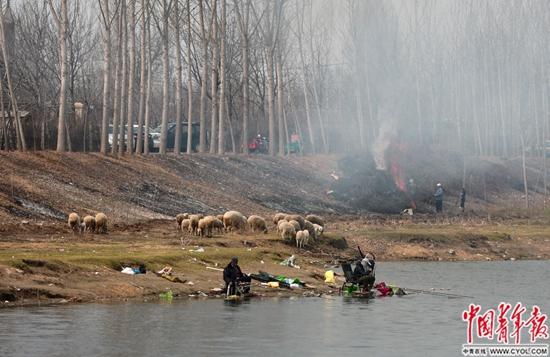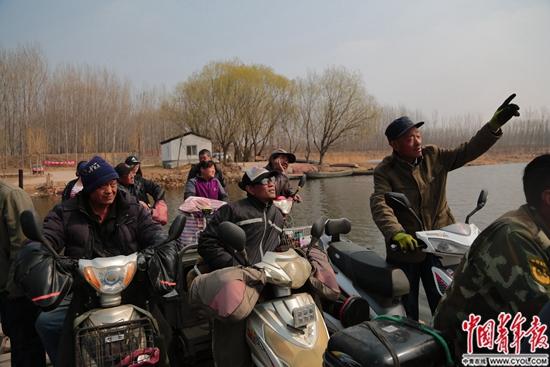 3月25日,周六,天剛蒙蒙亮,河北省廊坊市香河縣王店子村,開三輪車的老人、騎電動車的小伙子、抱著孩子的婦女……三三兩兩地來到村口的潮白河邊等待擺渡過河。