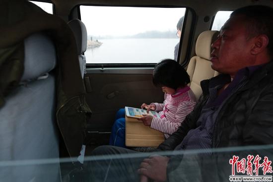潮白河上,9歲的王昕雨在開往北京的渡船上。她的家在北京通州,身后的姥姥家在河北王店子村。
