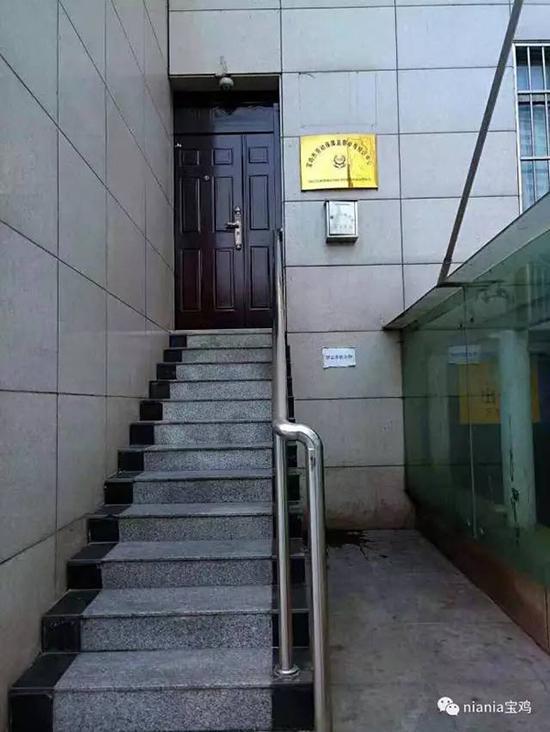 陜西寶雞市勞動保障監察舉報投訴中心門前,一個舉報箱被釘得“高高在上”,距離地面3米高,門口還有監控攝像頭。