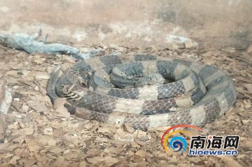 海口金牛嶺公園內動物園內已經死亡很久的金環蛇。南海網記者 姜飛 攝