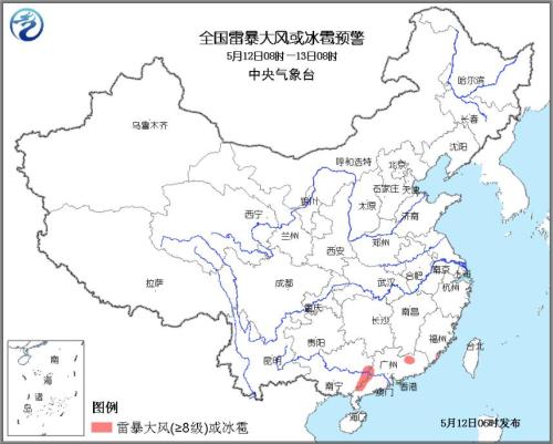 據(jù)中央氣象臺網(wǎng)站消息,中央氣象臺5月12日06時繼續(xù)發(fā)布強對流天氣藍(lán)色預(yù)警,預(yù)計5月12日08時至13日08時,廣西東部、廣東北部和西部、福建東南部等地的部分地區(qū)有8-9級雷暴大風(fēng),局地伴有冰雹天氣;浙江中南部、福建、廣西東部、廣東、海南南部等地的部分地區(qū)有短時強降水,小時雨強20-40毫米,局地小時雨強超過50毫米。