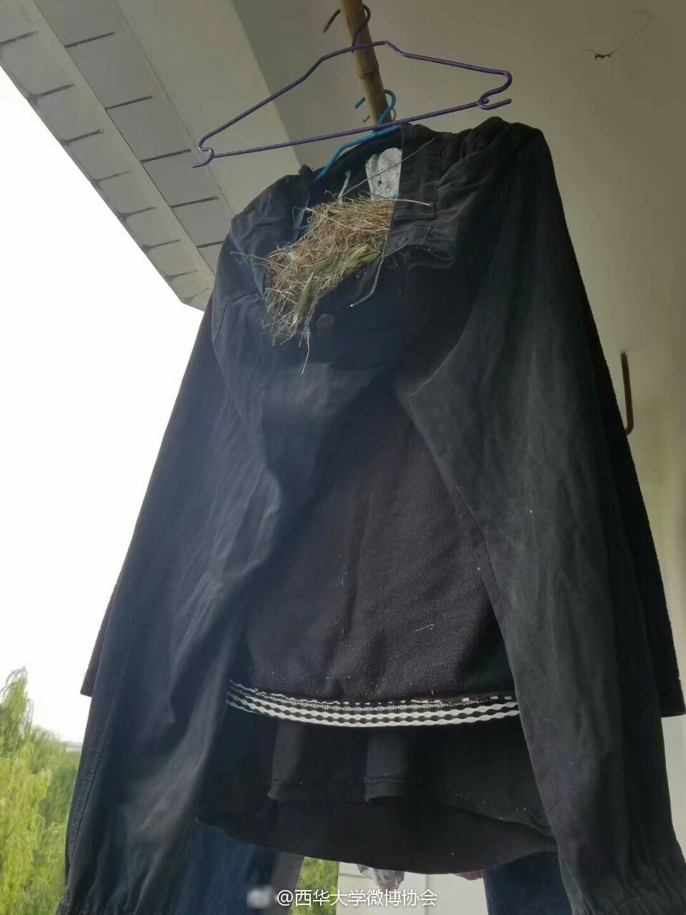 據成都商報報道,近日,因為@西華大學 空調安裝施工,發現汽車學院某男生宿舍晾在陽臺上的褲子里居然有兩顆鳥蛋。