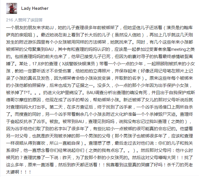知乎網(wǎng)站曾討論過《犯罪心理》讓人印象最深刻的劇情。其中網(wǎng)友Lady Heather的回答得到216人的贊同。在這一備受網(wǎng)友認同的回答中,有三個劇情與綁架有關(guān):
