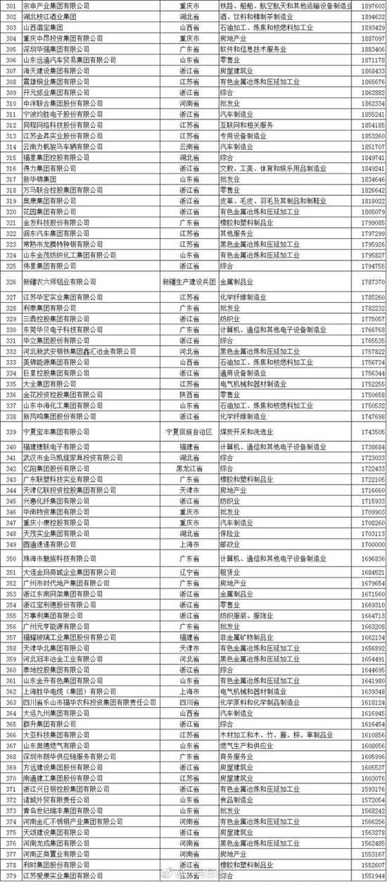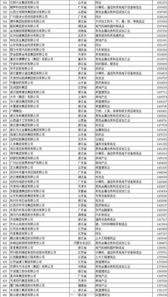 以下為2017中國民營企業(yè)500強榜單(來自人民日報微博):