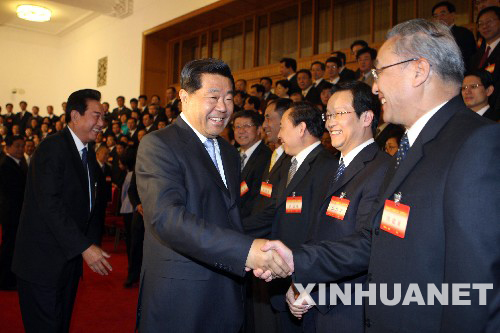 6月3日,海峽兩岸關(guān)系協(xié)會(huì)第二屆理事會(huì)第一次會(huì)議在北京人民大會(huì)堂召開。會(huì)議開始前,中共中央政治局常委、全國(guó)政協(xié)主席賈慶林親切會(huì)見全體代表。 新華社記者 劉衛(wèi)兵 攝