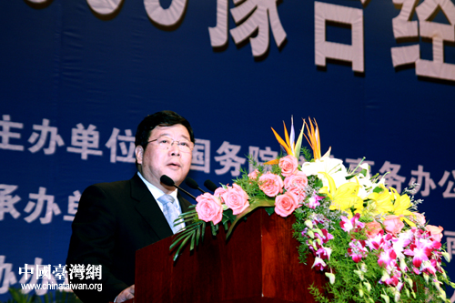 國務(wù)院臺辦副主任孫亞夫致辭表示,將重點推進(jìn)六項工作,為促進(jìn)兩岸經(jīng)濟(jì)合作做好事、辦實事(中國臺灣網(wǎng) 李徽 攝)