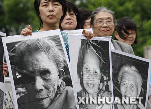 6月14日,在東京日本國會(huì)旁,來自日本各地的民間人士手舉“慰安婦”的照片冒雨抗議示威。當(dāng)日,在第二次世界大戰(zhàn)期間被迫充當(dāng)日軍“慰安婦”的韓國老人及眾多日本民間人士在日本國會(huì)旁抗議示威,要求日本政府“明確承擔(dān)歷史責(zé)任”并向受害者“直接謝罪和賠償”。 新華社記者任正來攝