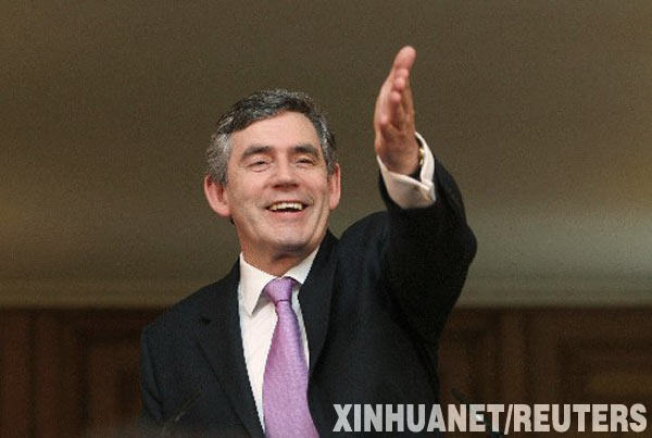 資料圖片:7月23日,英國新任首相布朗在倫敦的唐寧街舉行他出任首相后的第一次記者招待會