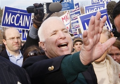 中新網(wǎng)1月9日電 據(jù)美國媒體報(bào)道,1月9日,麥凱恩在新罕布什爾州共和黨初選中獲勝。1月8日舉行的美國新罕布什爾州初選是美國第一場正式初選。