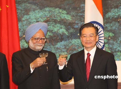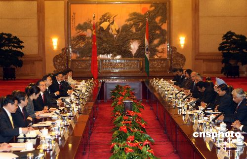 1月14日,中國國務(wù)院總理溫家寶與印度總理辛格在北京人民大會(huì)堂舉行會(huì)談。 中新社發(fā) 盛佳鵬 攝