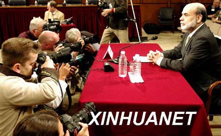 資料圖片:2007年11月8日,美國(guó)聯(lián)邦儲(chǔ)備委員會(huì)主席本·伯南克(右)出席美國(guó)國(guó)會(huì)聯(lián)合經(jīng)濟(jì)委員會(huì)在華盛頓國(guó)會(huì)山舉行的聽證會(huì)。伯南克警告說未來幾個(gè)月美國(guó)經(jīng)濟(jì)增長(zhǎng)速度可能放緩。 新華社記者張巖攝