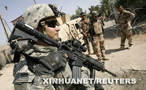 資料圖片: 一名駐伊拉克美軍士兵在伊拉克首都巴格達(dá)執(zhí)行任務(wù)。(新華社/路透)