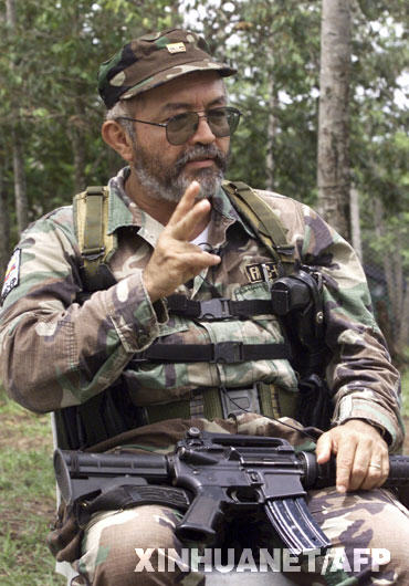 3月1日,哥倫比亞國防部人士證實哥最大反政府游擊組織“哥倫比亞革命武裝力量”的第二號人物勞爾·雷耶斯當天清晨在哥南部的普圖馬約省被政府軍打死。圖為勞爾·雷耶斯接受路透社采訪的資料照片(攝于2001年5月13日)。 新華社/法新