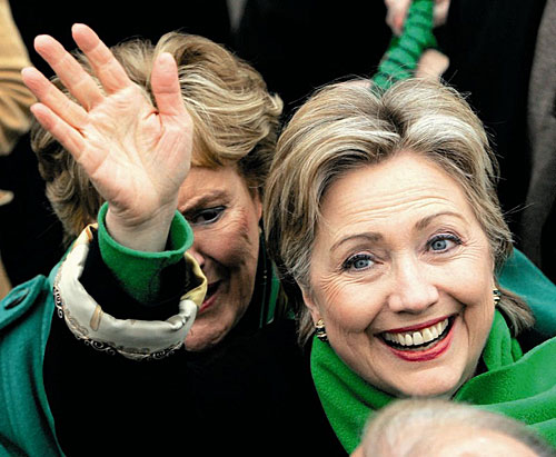 3月15日,在美國賓夕法尼亞州匹茲堡市的圣帕特里克節日大游行隊伍中,圍著綠色圍巾的民主黨總統競選人希拉里向支持者揮手。美國賓夕法尼亞州民主黨預選將在4月22日舉行。每年的3月17日,是西方的圣帕特里克節。