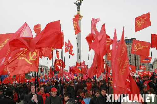3月31日,在美國總統布什到訪前,烏克蘭左翼黨派在首都基輔市中心舉行大規模群眾集會,反對烏克蘭加入北約。 新華社記者宋宗利攝