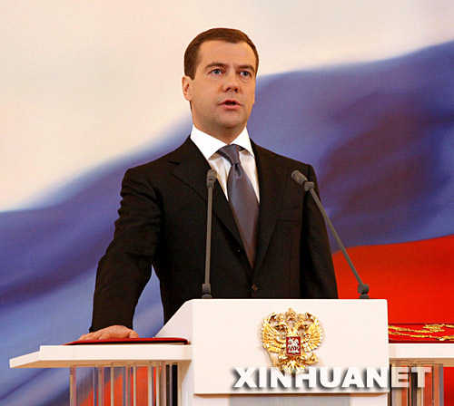5月7日,在俄羅斯首都莫斯科,俄羅斯當選總統梅德韋杰夫宣誓就職。當天,梅德韋杰夫正式就任俄羅斯聯邦總統。 新華社發
