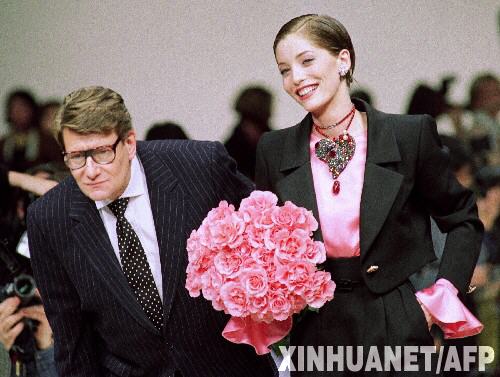 6月1日,法國著名時裝設計師伊夫·圣洛朗(也有譯為伊夫·圣羅蘭)因病在巴黎去世,享年71歲。這是1993年3月19日,伊夫·圣洛朗(左)在巴黎的時裝發布會上向觀眾致意(資料照片)。新華社/法新