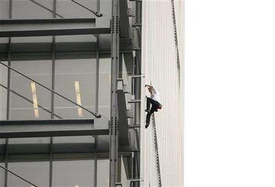中新網(wǎng)6月6日電 綜合媒體報道,有“蜘蛛俠”之稱的法國人羅伯特5日中午,沒有任何保護措施徒手攀爬美國紐約時報大樓外墻,掛上呼吁環(huán)保的橫額。