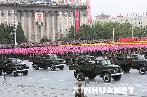 9月9日,裝備火箭炮的車(chē)輛在朝鮮首都平壤的金日成廣場(chǎng)上接受檢閱。朝鮮國(guó)防委員會(huì)、人民武力部和勞動(dòng)黨平壤市委員會(huì)當(dāng)日在平壤金日成廣場(chǎng)舉行工農(nóng)赤衛(wèi)隊(duì)閱兵式,熱烈慶祝朝鮮建國(guó)60周年。新華社記者 張濱陽(yáng) 攝