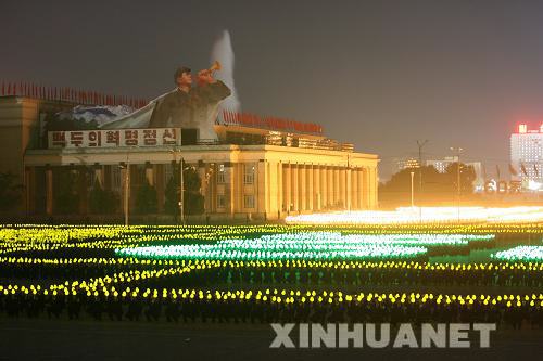 9月9日,朝鮮首都平壤金日成廣場(chǎng)上的火炬表演。朝鮮國(guó)防委員會(huì)、人民武力部和勞動(dòng)黨平壤市委員會(huì)當(dāng)日在平壤金日成廣場(chǎng)舉行工農(nóng)赤衛(wèi)隊(duì)閱兵式,熱烈慶祝朝鮮建國(guó)60周年。新華社記者 張濱陽(yáng) 攝