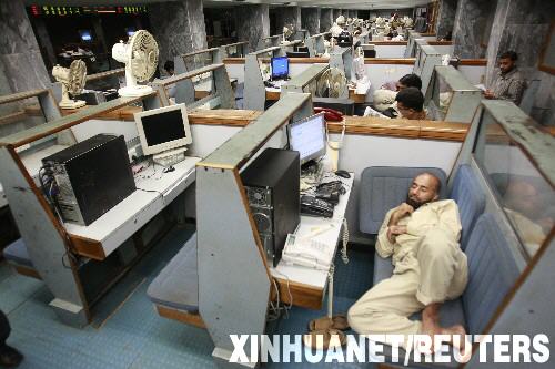9月16日,在巴基斯坦卡拉奇股票交易所,一名工作人員在交易大廳中睡覺(jué)。 新華社/路透 |