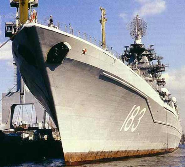 “基洛夫”級戰列巡洋艦船體修長,表面設施簡潔,一反俄軍水面艦只傳統特征(資料圖片)