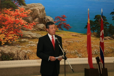 中國駐朝鮮大使劉曉明致辭。(中國駐朝鮮大使館網(wǎng)站圖)
