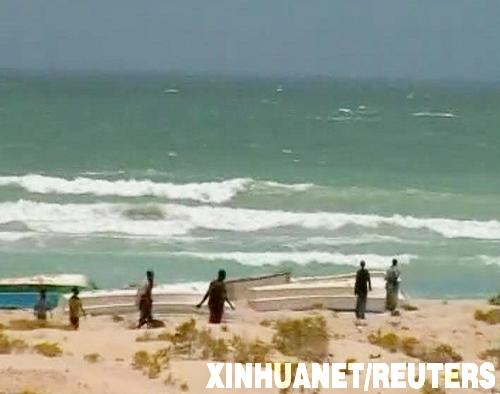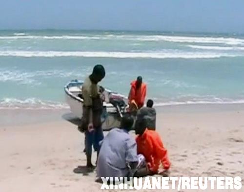 這張拍攝時間不詳的視頻畫面截圖顯示,幾名海盜在索馬里北部埃爾港的海灘上活動。新華社/路透