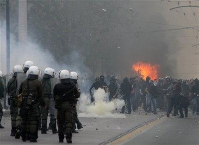 在雅典和北部的薩洛尼卡市中心,大群學生組成的示威隊伍向銀行、商店和車輛投擲燃燒瓶,警察不得不使用催淚瓦斯驅散示威人群。帕特拉斯、克里特島和科孚島也有騷亂發生。