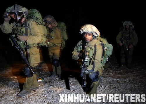 1月3日晚,以色列士兵在加沙地帶邊境地區行進。以色列軍方4日證實,自以軍3日晚對加沙地帶展開地面軍事行動以來,已有30名士兵受傷,其中兩人傷勢嚴重。新華社/路透