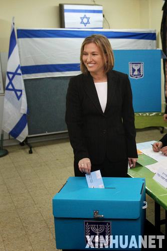 2月10日,以色列外長、前進黨主席利夫尼在特拉維夫的一個投票站投票。新華社發(fā)