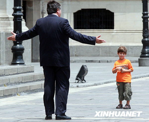 當天,阿蘭·加西亞與已滿3歲的私生子首次在總統府大院里公開露面,引起當地媒體和民眾的廣泛關注。新華社發