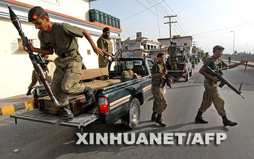 在巴基斯坦西北邊境省的開伯爾部族地區,一名士兵跳下軍車準備清剿塔利班。