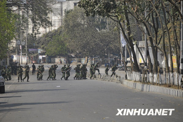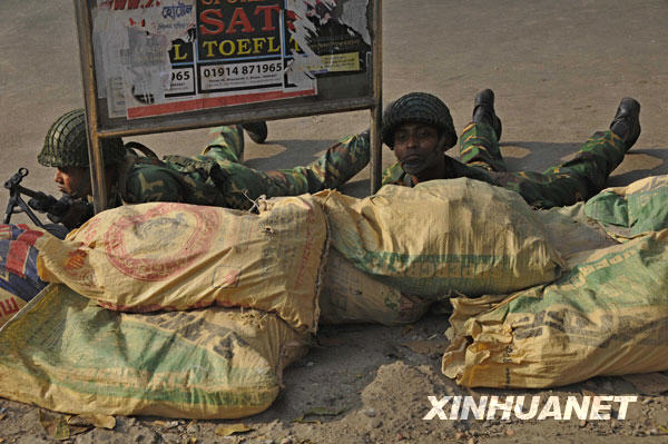 2月25日,孟加拉國軍人在首都達卡警戒。新華社發(扎曼攝)