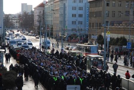 大約400名觀看足球聯(lián)賽巴尼克隊(duì)與布拉格斯拉維亞隊(duì)比賽的巴尼克隊(duì)球迷當(dāng)天傍晚乘坐火車從386公里以外的俄斯特拉發(fā)市到達(dá)首都布拉格后,早已恭候在火車站外的大隊(duì)防暴警察押送他們步行3公里直接去斯拉維亞體育場(chǎng)。比賽一結(jié)束又立即重新把他們押送回火車上,讓他們馬上回家,禁止他們?nèi)ナ锥际兄行聂[事。當(dāng)晚比賽巴尼克隊(duì)以0:1負(fù)于斯拉維亞隊(duì),其間沒有發(fā)生大規(guī)模球迷騷亂,巴尼克隊(duì)球迷深夜2時(shí)回到家鄉(xiāng)。