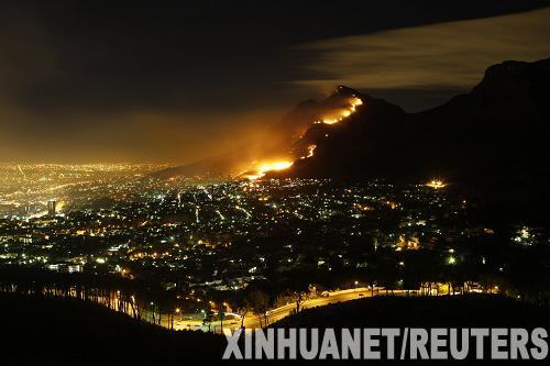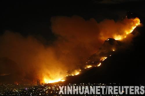 3月18日,南非開普敦一座山上燃起森林大火。大火致使當地居民數百人被迫疏散。新華社/路透
