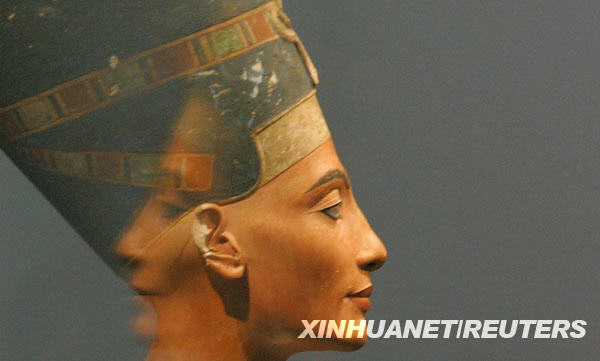 這張拍攝于2005年8月12日的照片顯示的是在德國柏林阿爾泰博物館展覽的納費提提王后半身像。新華社/路透