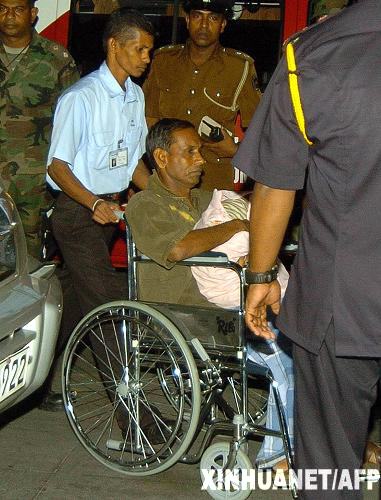 據(jù)法新社4月22日援引斯里蘭卡軍方提供的消息報(bào)道,斯里蘭卡反政府的泰米爾伊拉姆猛虎解放組織(猛虎組織)發(fā)言人達(dá)亞·馬斯特當(dāng)日向政府軍投降。這是達(dá)亞·馬斯特坐在輪椅上前往科倫坡一家醫(yī)院接受心臟病治療的資料照片(2006年7月13日攝)。新華社/法新