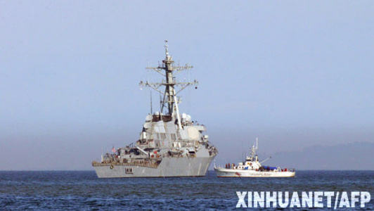 資料圖片:2008年11月22日,“巴里”號(hào)美軍驅(qū)逐艦停靠在格魯吉亞港口城市巴統(tǒng)附近。美國(guó)駐格魯吉亞使館發(fā)言人當(dāng)日說(shuō),“巴里”號(hào)驅(qū)逐艦隸屬美國(guó)海軍第六艦隊(duì),原駐扎在意大利那不勒斯,22日抵達(dá)巴統(tǒng)訪問(wèn)。艦上沒(méi)裝載人道主義救援物資,也沒(méi)裝載軍事援助物資。 新華社/法新