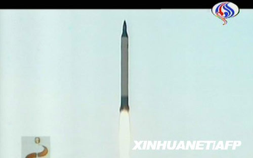 這是5月20日伊朗一家電視臺播放的伊朗成功發射“泥石-2”型地對地導彈的截圖畫面。伊朗總統艾哈邁迪-內賈德20日在伊朗北部塞姆南省的群眾集會上宣布,伊朗當天成功發射一枚射程約為2000公里的“泥石-2”型地對地導彈。 新華社/法新