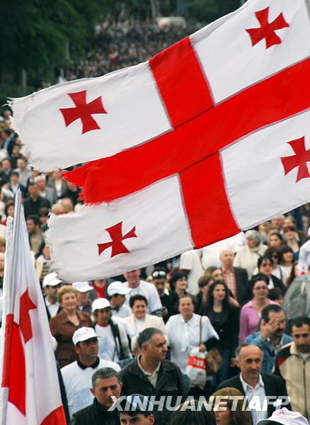 5月26日,在格魯吉亞首都第比利斯,格反對派支持者高舉國旗參加示威活動。當日,格魯吉亞迎來獨立日,格反對派從全國各地召集數萬人在第比利斯舉行示威活動,要求總統薩卡什維利下臺。這是自2008年8月格俄沖突爆發以來,反對派舉行的規模最大、持續時間最長的抗議活動。新華社/法新