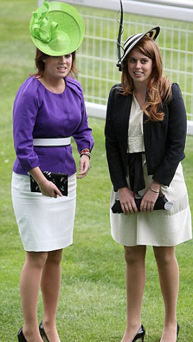 中新網6月19日電 據英國媒體報道,英國皇家賽馬會18日進入第三天,也就是英國人所稱的“淑女日”,依照傳統,這一天女士們都會戴著造型奇特創意十足的帽子亮相,爭奇斗艷吸引眼球。據報道,當天19歲的尤珍妮公主和20歲的比特萊斯公主也齊齊亮相,尤珍妮的綠色大帽子尤為夸張,被媒體稱為像頭上頂著一粒“大豌豆”。相比之下,比特萊斯公主則低調了很多,黑白色相間的帽子很素氣,一根細長的羽毛不露聲色。
