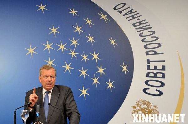 6月27日,在希臘西部的科孚島,北約秘書長(zhǎng)夏侯雅伯在北約-俄羅斯非正式外長(zhǎng)會(huì)議后舉行的新聞發(fā)布會(huì)上講話。當(dāng)日,北約秘書長(zhǎng)夏侯雅伯與俄羅斯外長(zhǎng)拉夫羅夫在此間宣布,北約與俄羅斯同意恢復(fù)軍事合作。當(dāng)天下午,拉夫羅夫與北約成員國(guó)外長(zhǎng)舉行非正式會(huì)議,這是去年8月俄羅斯和格魯吉亞發(fā)生軍事沖突以來(lái)雙方舉行的最高級(jí)別的會(huì)談。 新華社記者武巍攝