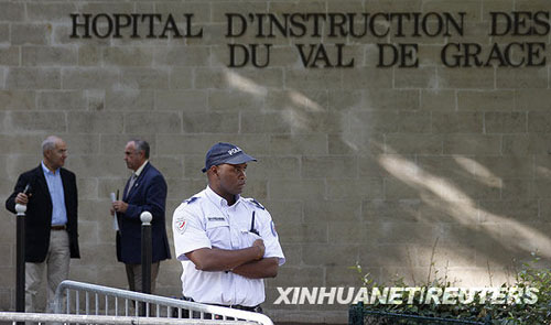 7月26日,安全人員在法國首都巴黎的瓦勒德格拉斯軍隊醫院門口警戒。當日,法國總統薩科齊因身體不適,被送往瓦勒德格拉斯軍隊醫院接受檢查和治療。隨后,法國總統府秘書長克洛德·蓋昂向媒體表示,薩科齊目前仍在醫院接受治療,不過他的病情已無大礙。 新華社/法新