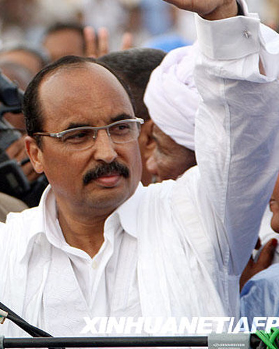 7月19日,毛里塔尼亞內(nèi)政部宣布,前“最高國務(wù)委員會(huì)”軍政權(quán)領(lǐng)導(dǎo)人穆罕默德·烏爾德·阿卜杜勒-阿齊茲在18日舉行的總統(tǒng)選舉中獲得52.58%有效選票,贏得總統(tǒng)選舉。這是2009年7月17日,阿齊茲在毛里塔尼亞首都努瓦克肖特參加競選集會(huì)的資料照片。新華社/法新