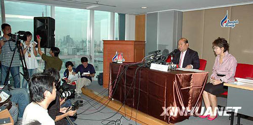 8月4日,曼谷航空公司總裁普提蓬·巴薩通奧索在曼谷召開的新聞發布會上就客機滑出跑道事故發表講話。新華社發(塔納攝)