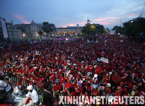 上萬名“紅衫軍”17日在總理府所在地附近舉行示威活動。活動組織者乍杜蓬·蓬攀說:“‘紅衫軍’今天集會目的是問請愿書審查的進展。我們來這里是想向政府發出信號……我們本月底會再回來,抗議活動不會很快結束。”