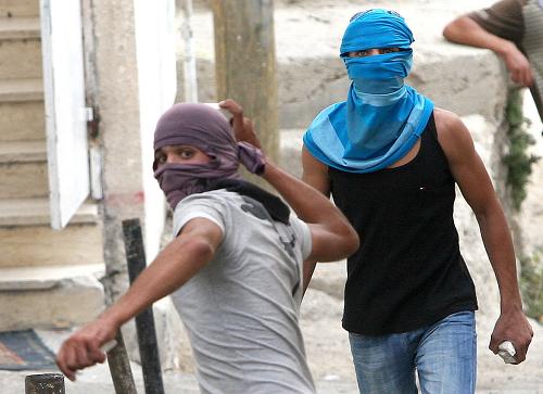 10月9日,以色列警察與抗議者在位于東耶路撒冷的一個社區內發生沖突,造成多人受傷。這是抗議者向警察投擲石塊。(10月9日攝)