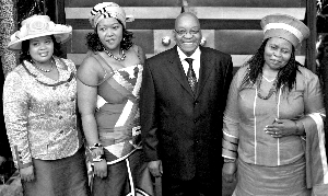 2009年6月3日,托貝卡·瑪西佳(左二)與祖馬的妻子一同參加祖馬首次國(guó)會(huì)演講并合影留念。